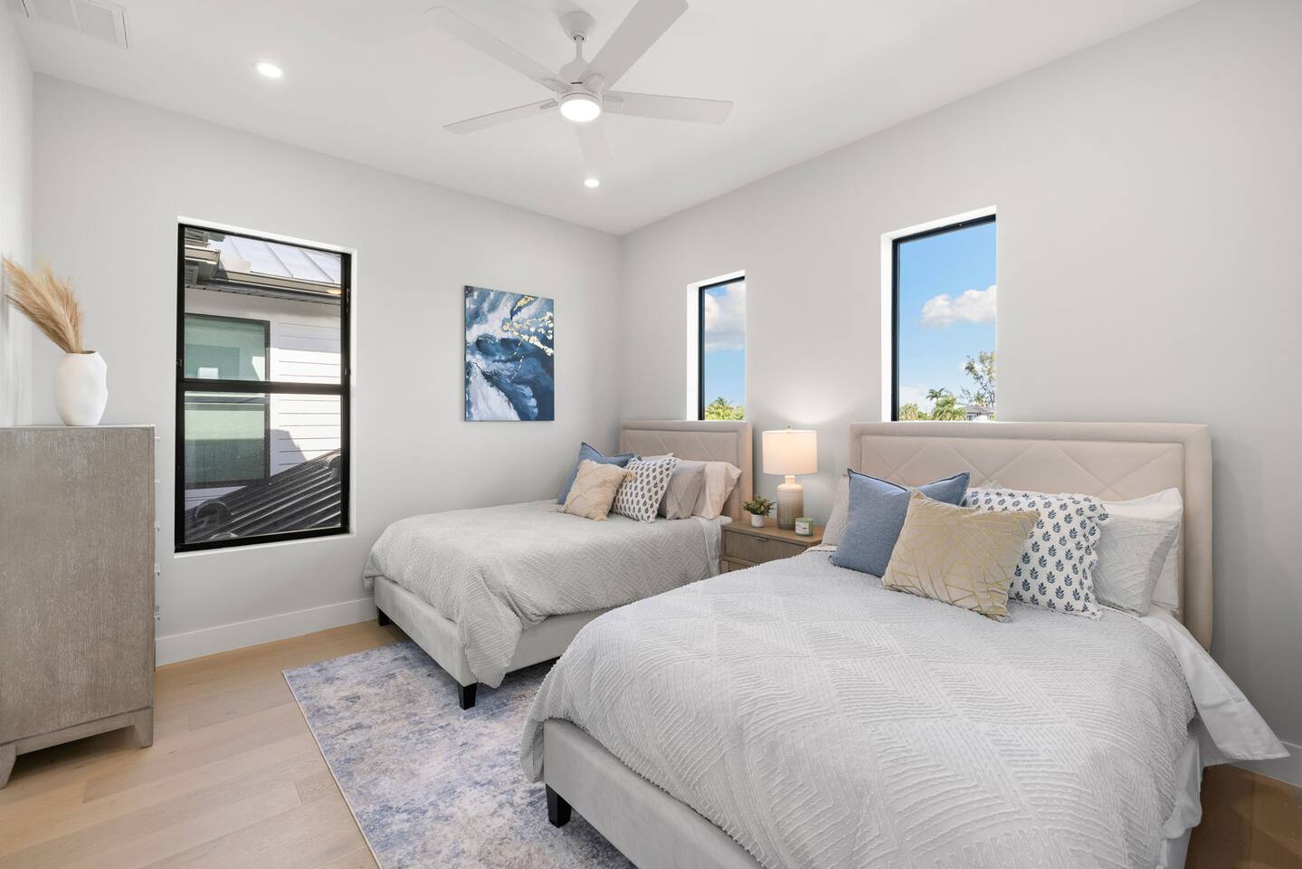 • Each bedroom features private en-suite bathroom and walk-in closet •Master bedroom on first floor •Flat Screen Smart TV Throughout the home • XFinity High Speed Wi-Fi • Fully equipped kitchens with Thermador Appliances • Keurig coffee maker • High quality bath towels, hand towels & face cloths • Full size washer & dryer • Additional bedding located in linen closets - Beachwear / trolly to bring to the beach •complimentary shampoo, body wash and conditioner • Beach chairs, beach towels & umbrella •Outdoor games I.e. pool basket ball hoop, kam jam, frisbees, etc • Full outdoor kitchen with 42 inch propane grill (propane included) • Outdoor dining & comfortable seating area • Lounge chairs & dining area • Heated pool • Driveway parkings 4 cars in total • Pack n Play & High Chair